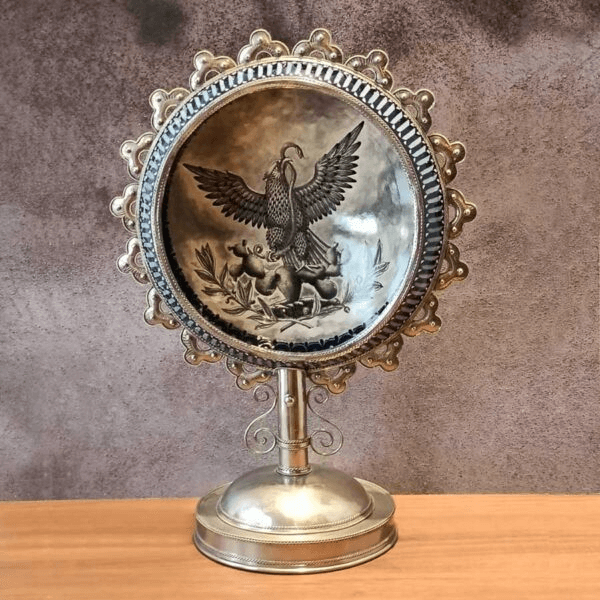 Para decorar piezas como estas el artesano tarda varios meses, primero perfilando la pieza utilizando una jeringa y después que la pieza tiene el diseño pasa al relleno, llenando los decorados.