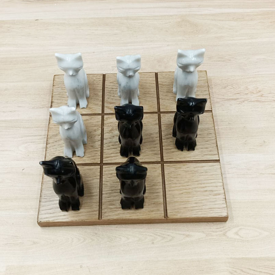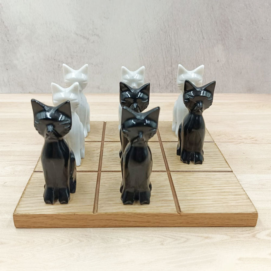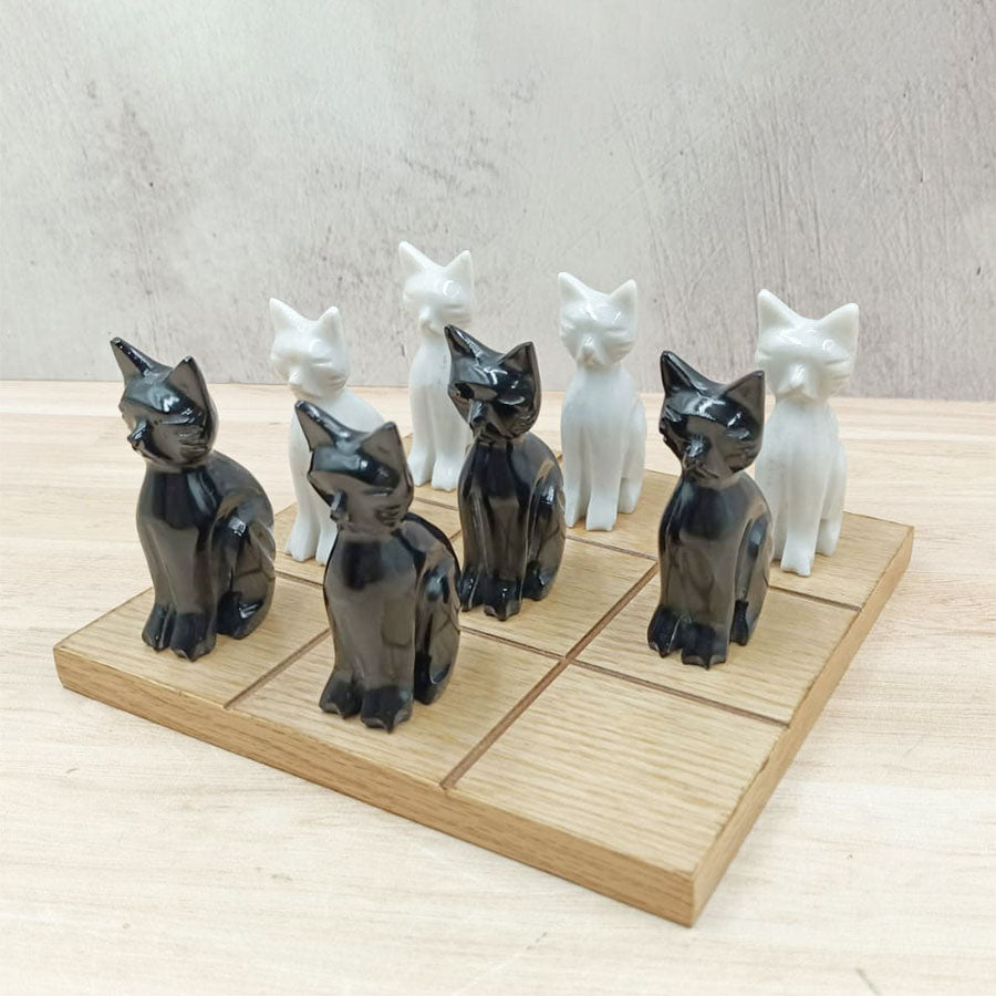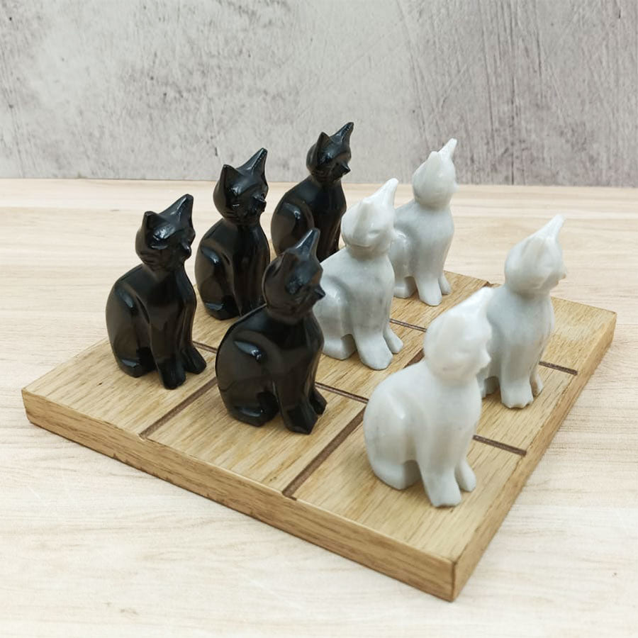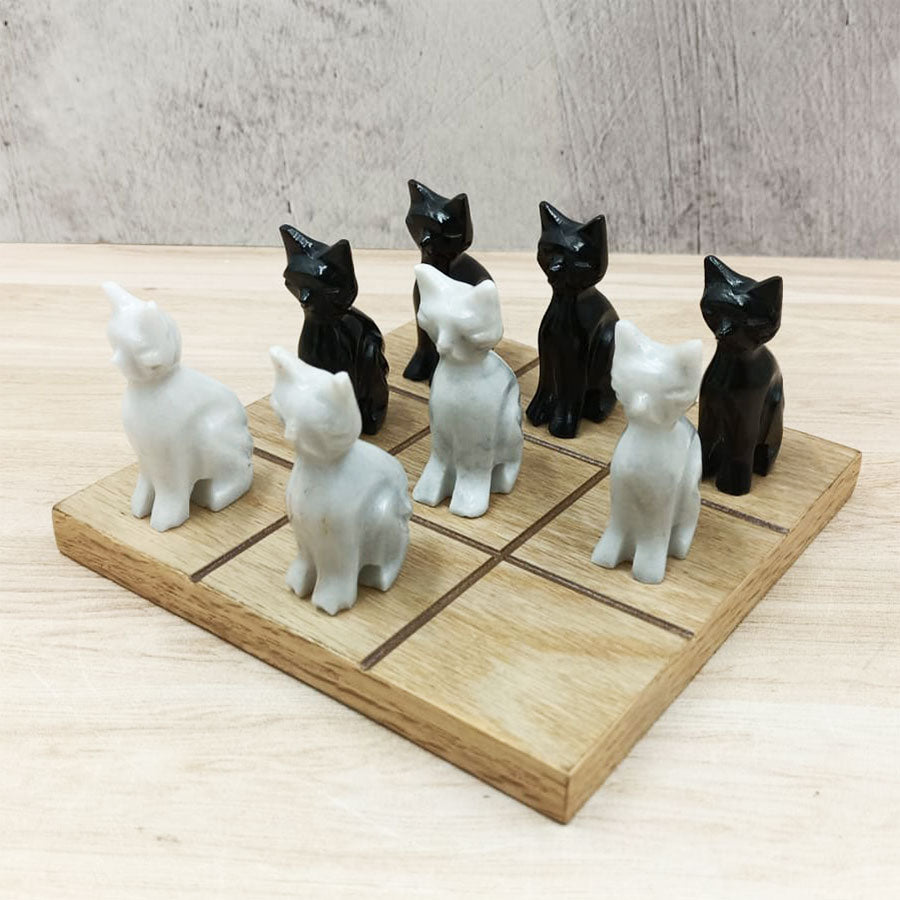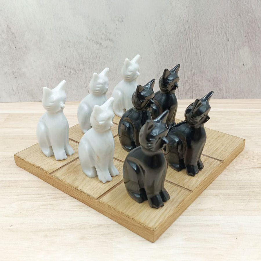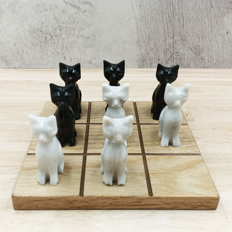 Enjoy this classic game of tic-tac-toe with your family and friends and add a fun and modern touch to your home or office decor. Each cat is handcrafted in black and white marble on a wooden base.