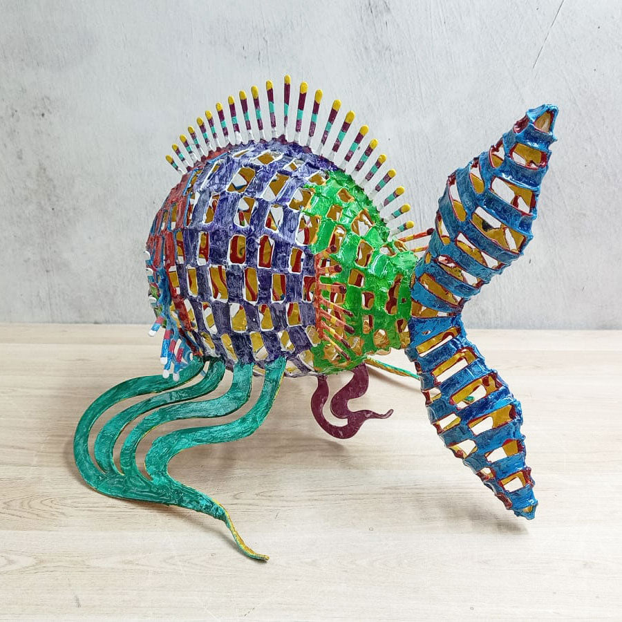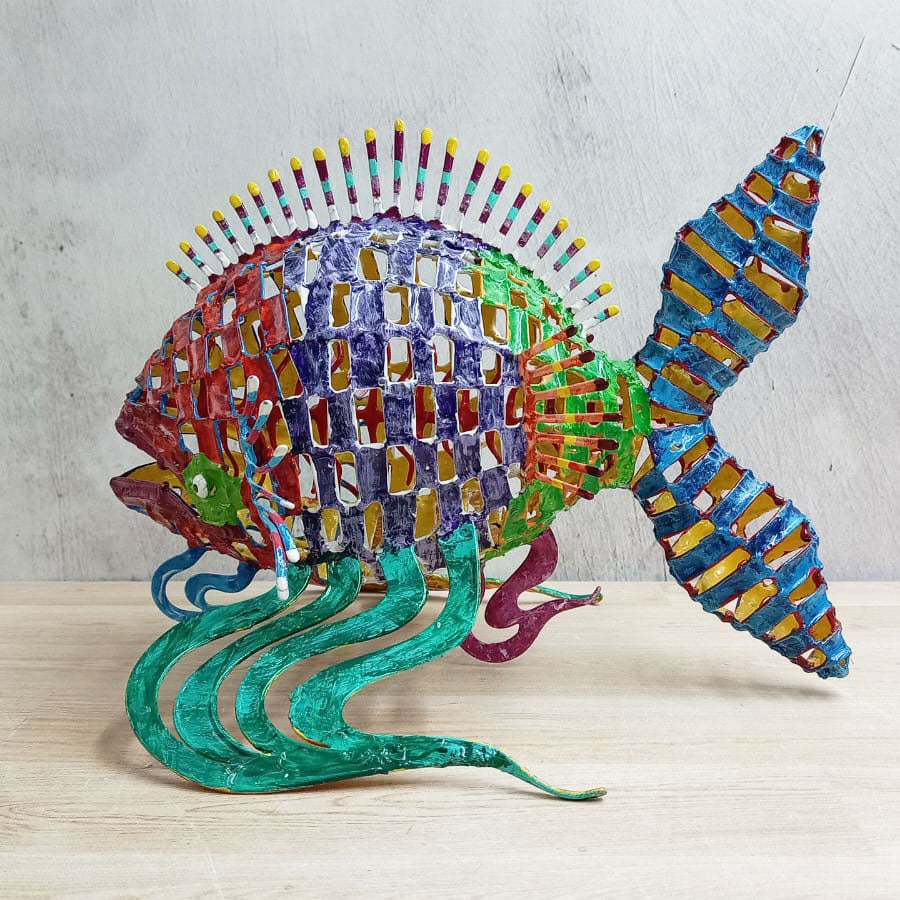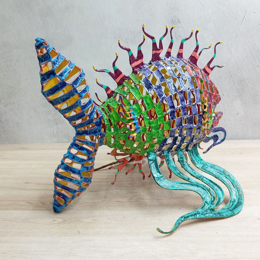 Add color to any space in your home or office with these original sculptures made with a unique technique that consists of a kind of weaving of steel wire of different measurements joined with drop-by-drop welding until the desired shape is obtained and finally decorated and hand-painted with enamels in vibrant colors.