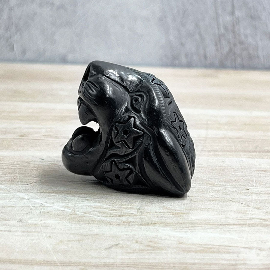 Jaguar head made of black clay
