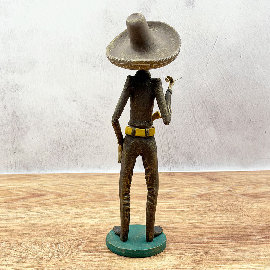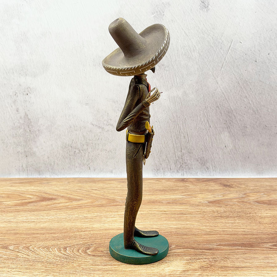 Handmade "Catrín" made of clay paste and painted with acrylic or vinyl paints; here he is represented with revolutionary era clothing and his revolver. It is an example of traditional craftsmanship for Day of the Dead.