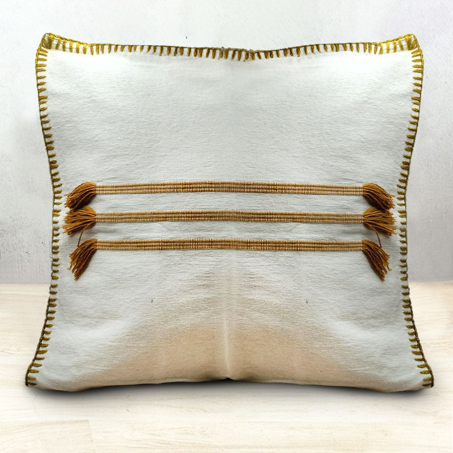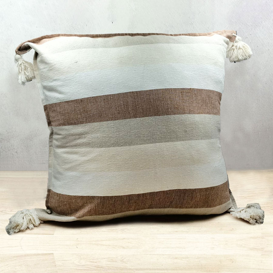Funda para cojín en tonos neutros, es fácil de combinar y le dará un toque acogedor a recamaras o terrazas. Está hecho de manera artesanal en telar de pedal y con textiles teñidos con tintes naturales por artesanos de Oaxaca.