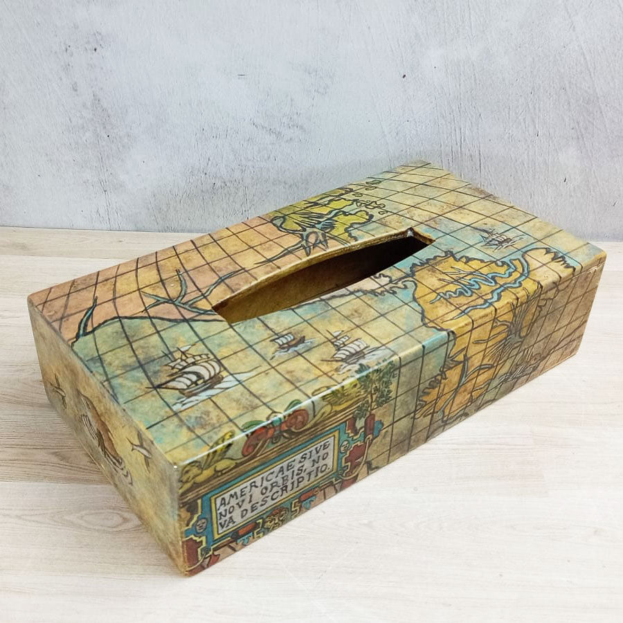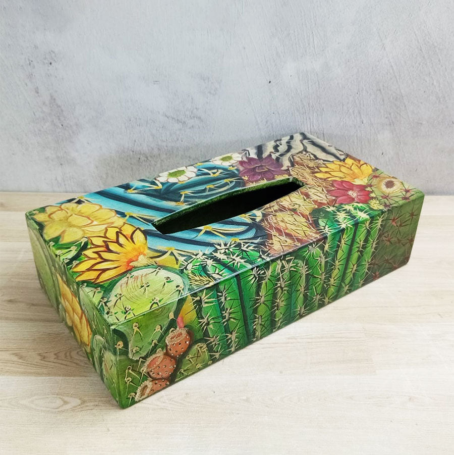 Decora tu espacio con esta caja para guardar pañuelos desechables. Está hecha de madera y pintada en diversos diseños llenos de color por artesanos de Michoacán; además está terminada con una laca especial para que evitar que se marquen pequeños rayones.